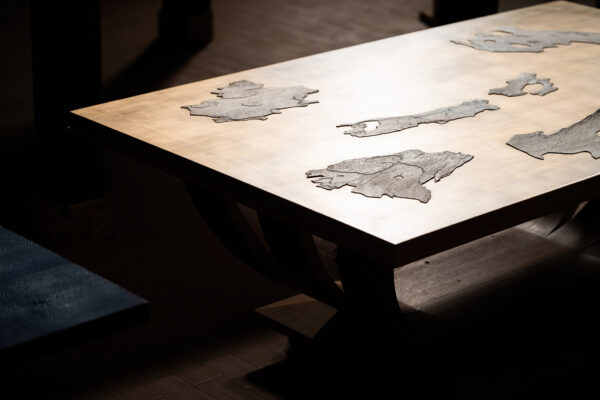 In “La sapienza delle mani” collection, which is a result of a personal journey, Giordano Viganò contributes to innovating the use of wood by combining it with glass, metal, silver, bone, but also galuchat, different woods, gold leaf.The small, extremely precious objects created by Viganò embody the poetry of a masterpiece: portable ebony and galuchat chess sets, wood and precious leather pochettes, superiorly elegant wood and leather desk sets with bone finish. His large palm wood tables are also marvelous, as are the special creations where his craftsmanship never stops pushing limits.